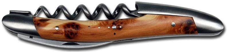 Sommeliermesser in Wacholder. Das Laguiole Sommeliermesser ist patentiert und wird aus besonders edlen Materialien hergestellt. Für die Eleganz seiner Form und die effiziente Handhabung erhielt es 1996 den Design-Plus-Preis während der Messe Ambiente in Frankfurt.
