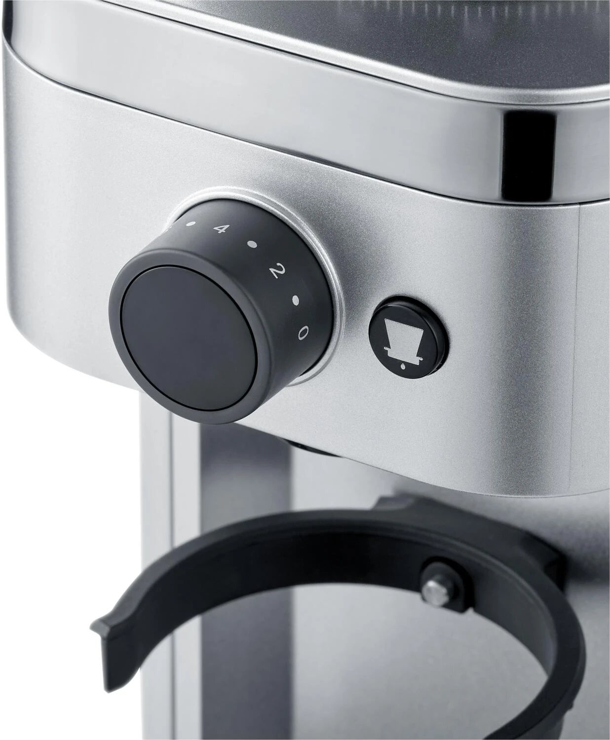 - Kaffeemühle mit Edelstahl-Kegelmahlwerk, eine Überhitzung der Kaffeebohnen wird vermieden