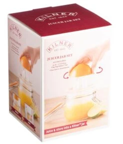 - Material: Antriebsgruppe aus Aluminium, einem Saftbehälter und zwei Preßköpfen aus technischem Kunststoff.