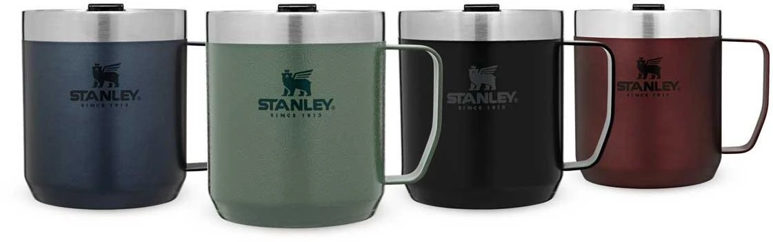 Der Stanley CLASSIC CAMP MUG im neuen Design hält mit seiner doppelwandigen Edelstahl-Vakuumisolierung heiße Getränke bis zu 1,5 Stunden heiß und kalte Getränke bis zu 3 Stunden kalt. Neu ist, dass der aus rostfreiem 18/8-Edelstahl hergestellte Trinkbecher jetzt einen durchsichtigen Deckel aus bruchfestem Tritan-Kunststoff besitzt, aus den es sich noch bequemer trinken lässt. Der mit hammerschlaggrüner Lackierung versehene CLASSIC CAMP MUG ist spülmaschinenfest und alle Teile sind BPA-frei.